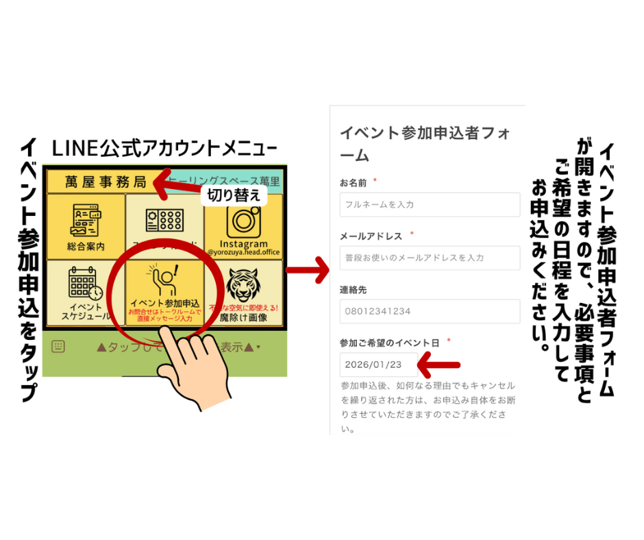 ↓LINE公式アカウントからのイベント参加申込方法↓