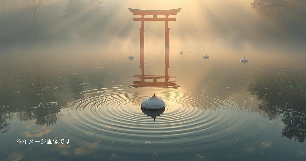 穏やかな水面に浮かぶその鳥居は、現世と神域を繋ぐゲート。